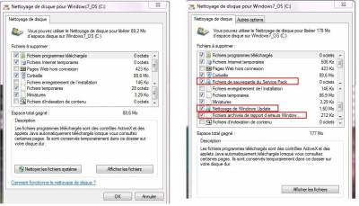 Afficher le texte source Anciennes révisions Liens de retour Ajouter au livre. Exporter en PDF Exportation ODT Créateur de livres Ajouter cette page à votre livre Créateur de livres Retirer cette page de votre livre Voir ou modifier le livre (0 pages) Aide Purger le répertoire WinSxS sur Windows 7 Sous Windows Seven le répertoire WinSxs peut atteindre une taille énorme : Ne le purgez par tel quel. Commencez par vous assurer que vous avez la KB2852386 d'installé sur votre poste. Pour cela allez sur l'url ci-dessous avec Internet Explorer et cliquez sur le bouton Ajouter qui correspond à votre OS http://catalog.update.microsoft.com/v7/site/Search.aspx?q=2852386 Cliquez ensuite sur Afficher le panier. Cliquez sur Télécharger. Cliquez sur Fermer. Exécutez le package téléchargé. Ici il a été téléchargé sur le E: Le téléchargement a été automatiquement placé dans un répertoire. Ensuite la première option est de faire un clic droit sur le disque de votre système puis de cliquez sur Nettoyage de disque. Si vous avez bien installé la KB2852386 vous pouvez cliquez sur Nettoyer les fichiers système. Vous pourrez ainsi effacer les fichiers de sauvegarde du Service Pack Mais une fois la KB2852386 installée, l'option la plus complète est de lancer une fenêtre de commande en tant qu'administrateur puis lancez cleanmgr.exe Sélectionnez le disque de votre OS puis cliquez sur Ok Un calcul de l'espace sera réalisé Vous aurez alors accès à tout ce que vous pouvez traiter. Par rapport à un lancement classique vous pourrez cocher : “Fichiers de sauvegarde du Service Pack” “Nettoyage de Windows Update” “Fichiers archivés de rapport d'erreurs Windows” Source : http://www.tutos.eu/?n=5584// Table des matières Purger le répertoire WinSxS sur Windows 7